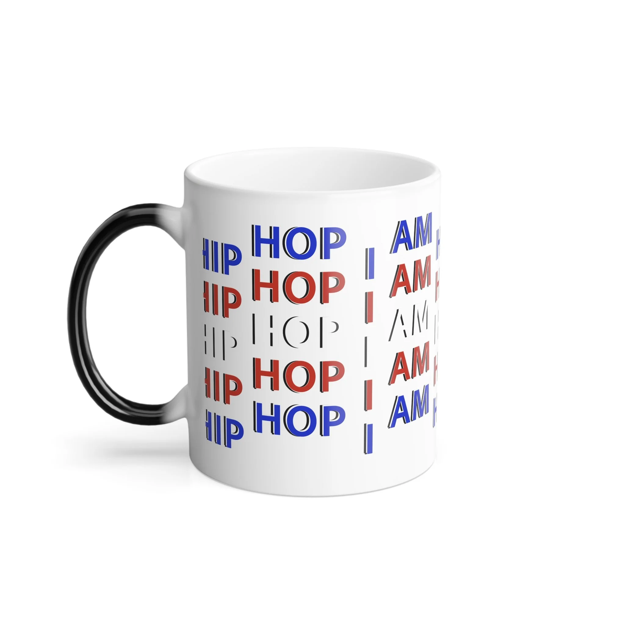 Feel the beat with every warm sip. This 11oz color-morphing mug keeps a sleek black exterior when cool, then reveals bold ‘I AM HIP HOP’ lettering in red and blue as soon as hot liquid is poured in. The glossy, full-wrap print pops against the white interior, giving your morning coffee or evening tea an instant soundtrack. It’s made from ceramic, safe for microwave use, and finished lead- and BPA-free — small care note: hand wash recommended to keep the color-reactive effect vivid. Whether it’s for studio breaks, late-night lyric sessions, or a kitchen shelf that speaks your style, this mug brings the culture into everyday rituals.